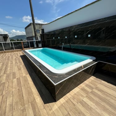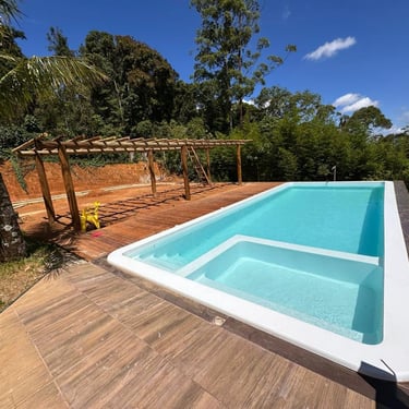 Oferecemos construção de piscinas em vinil, fibra e alvenaria, personalizadas para cada cliente.